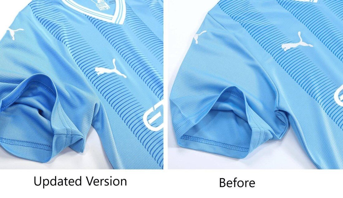 Introducing the new and improved Manchester City home jersey, featuring upgraded breathable materials for enhanced comfort and performance on the pitch, close to the original version.