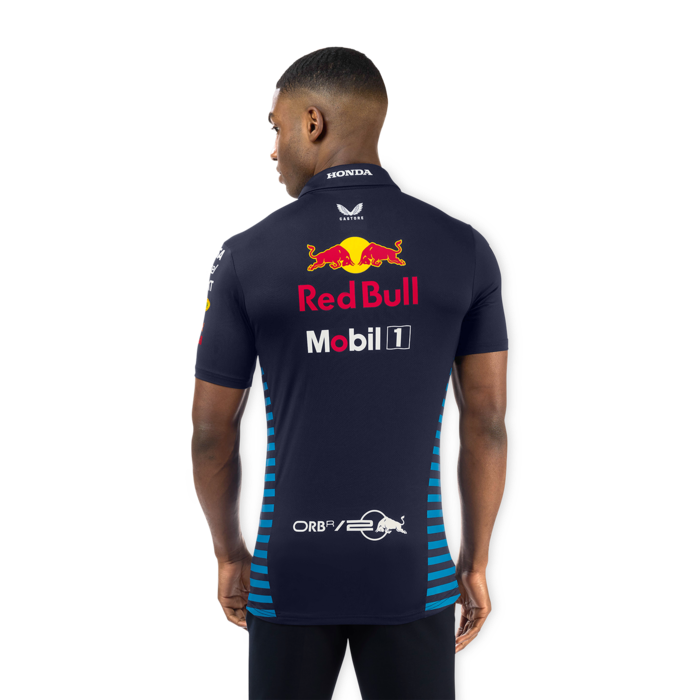 Red Bull F1 Racing Team Polo 2024 – Navy OUT NOW! This is the official Red Bull F1 Racing Team Polo 2024 – Navy. The Red Bull F1 Racing Team Polo 2024 is designed and manufactured by Castore. Featuring with a contrast pointed collar and hidden button placket, this is the special part of this Red Bull F1 Racing Team Polo 2024. The overall design of the Red Bull F1 Racing Team Polo 2024 is predominantly black, so the sponsors' names are printed on the front and back. The classic Red Bull Racing red and yellow logos are centred on the back, catching everyone's attention even on the back of this Red Bull F1 Racing Team Polo 2024. Celebrate with this Red Bull F1 Racing Team Polo 2024 – Navy like you're part of them!